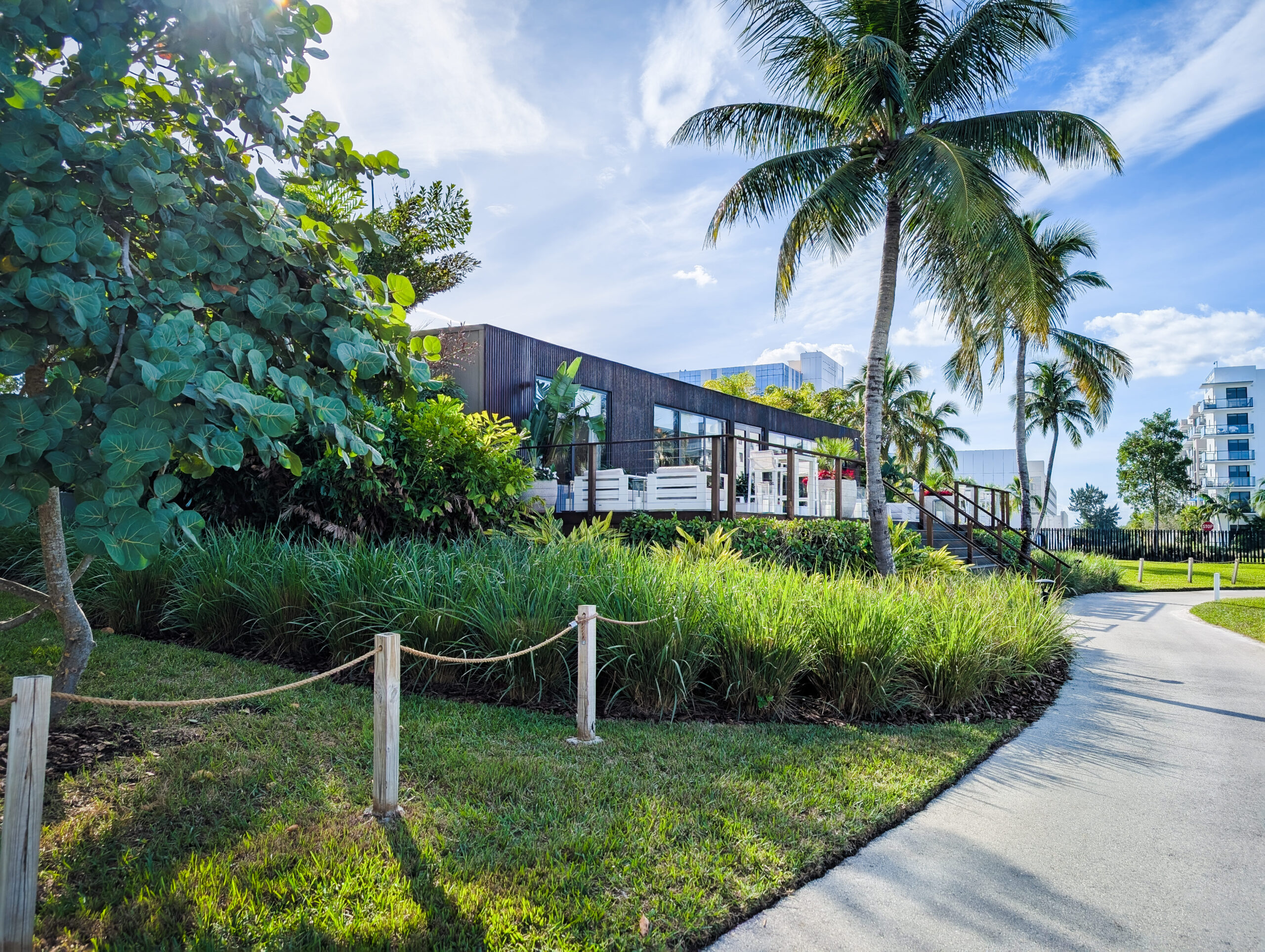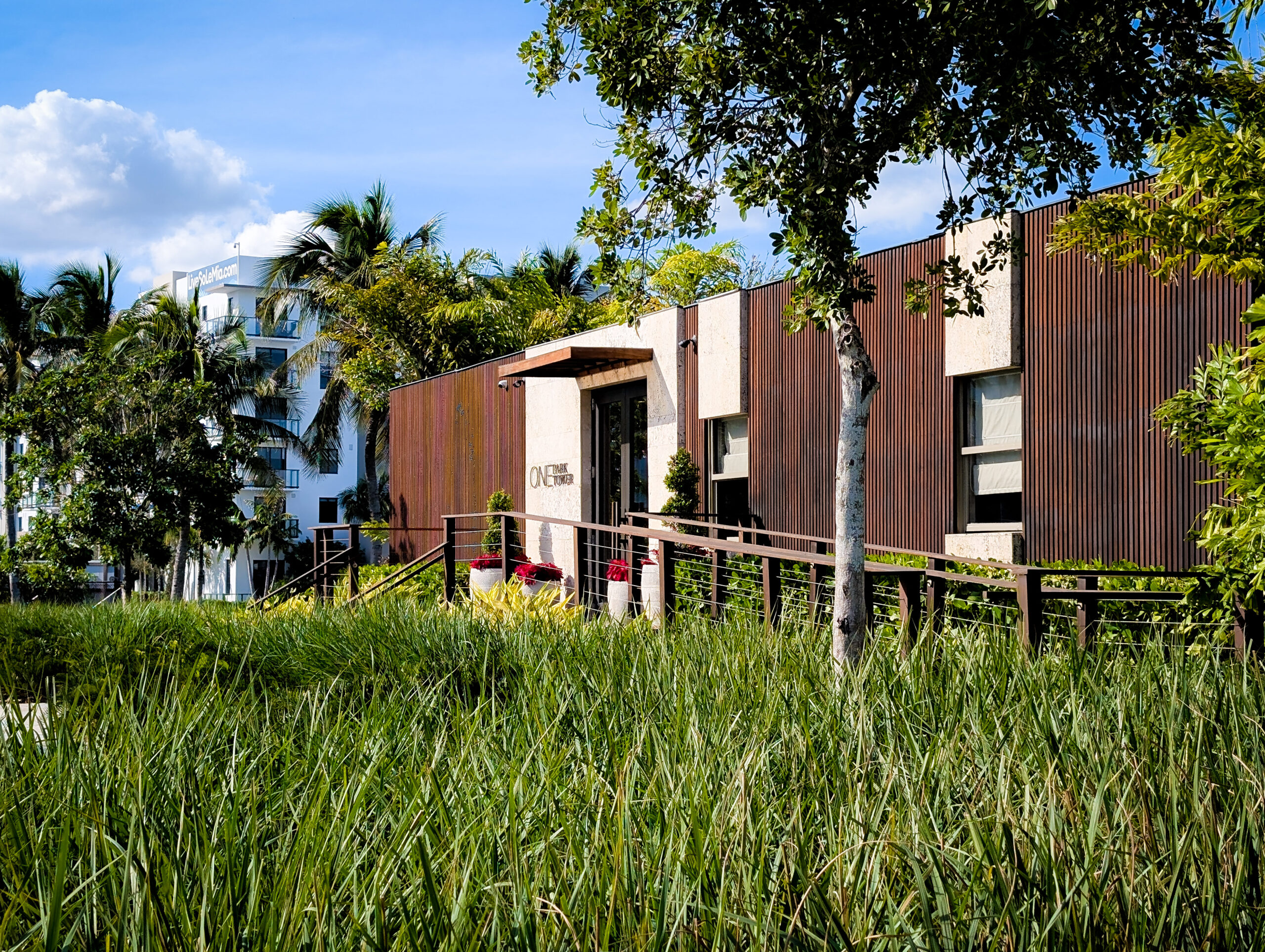 Temporary sales center for One Park residences situated in the unique Sole Mia residential complex. Situated adjacent to one of Florida’s largest Crystal Lagoons, landscape was meticulously chosen to bring elegance and lushness to the sales center experience.